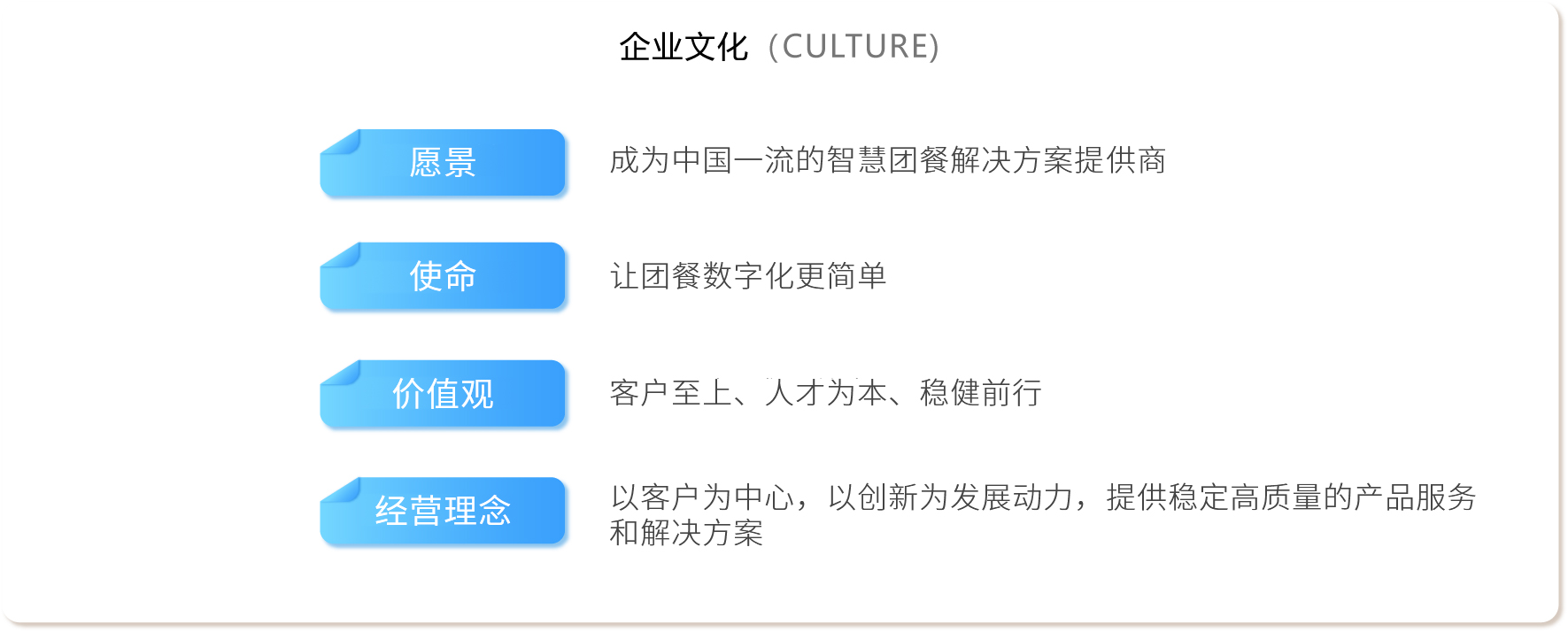 截止目前已相繼為超過1000家客戶,1500+食堂,超過500萬消費者,提供智慧食堂就餐服務(wù),覆蓋單位、醫(yī)院、教育、交通、能源、金融、電信等眾多行業(yè)客戶群體,服務(wù)了包括國資委、舟山市政府、佛山公安局、銀川國際機場、TCL、蘇寧集團、金龍魚、阿里巴巴集團、東風(fēng)汽車等知名用戶,成為農(nóng)業(yè)銀行、中國移動ICT戰(zhàn)略合作伙伴以及華南理工大學(xué)、中山大學(xué)等知名大學(xué)智慧食堂合作伙伴,是全國智慧食堂行業(yè)領(lǐng)先的知名品牌。