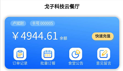 ③點擊“訂餐記錄”“批量訂餐”“食堂公告”“意見留言”等圖標(biāo),可進入對應(yīng)功能頁面