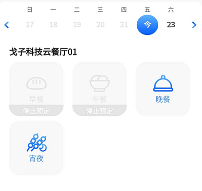 ③當(dāng)餐別顯示“停止預(yù)定”時,用戶無法在進行預(yù)訂。