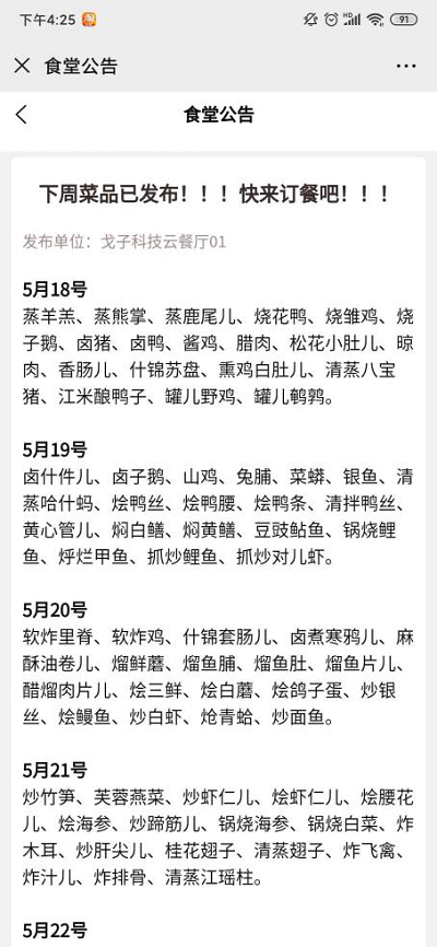 首頁點擊“食堂公告”進入,或者點擊新公告發(fā)布時,首頁頂部航條