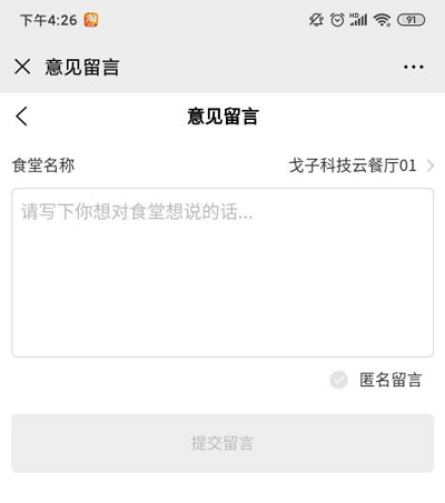 首頁點擊“意見留言”圖標(biāo),進入意見留言頁面