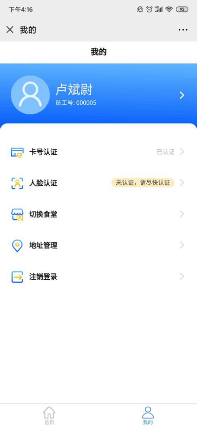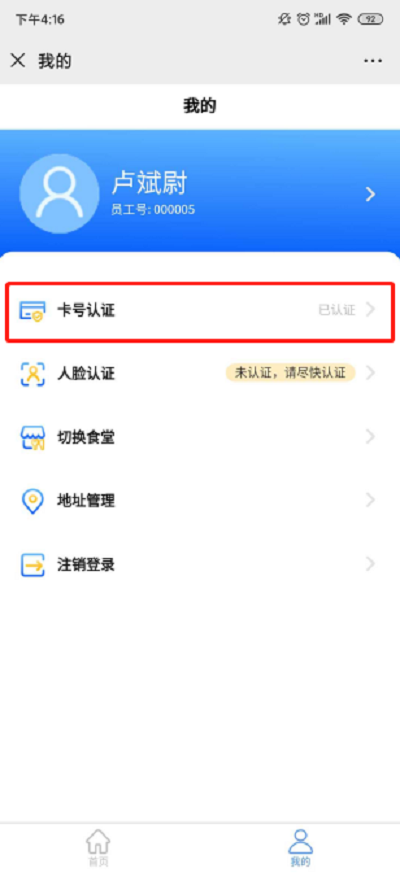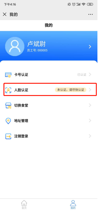 ②若顯示“未認(rèn)證,請盡快認(rèn)證”,則點擊可輸入姓名、工號、卡號進行綁定認(rèn)證