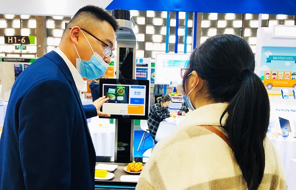 工作人員耐心講解智慧食堂新科技產(chǎn)品